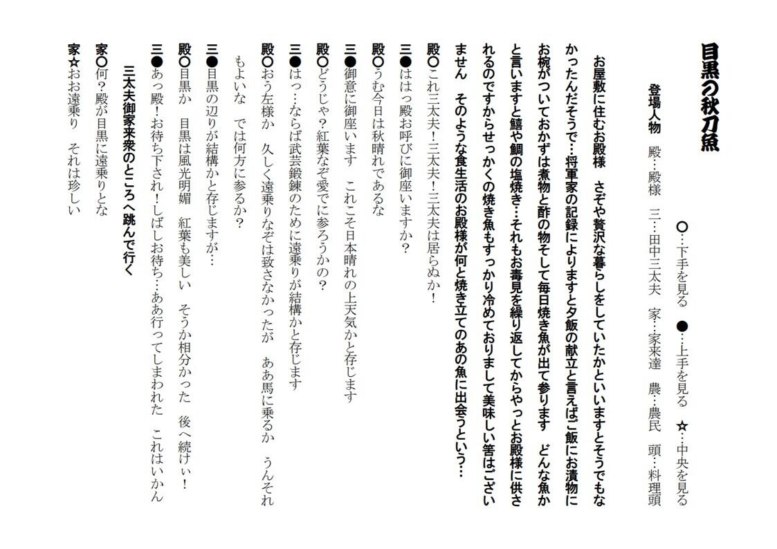《梅》の第3弾は、お殿様物の最右翼「目黒の秋刀魚」。「サンマは目黒に限る」のオチが楽しいポピュラーな一席です。