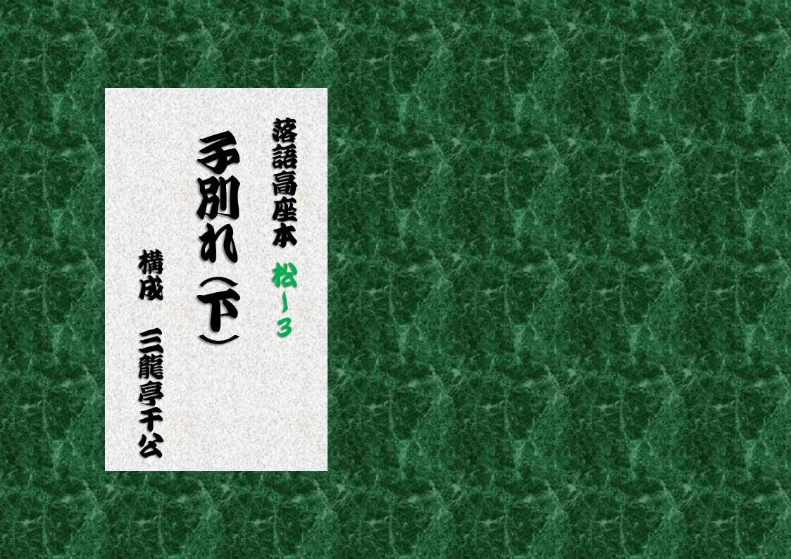 高座本シリーズ《松》の第3弾は親子、夫婦の情愛を描く有名な人情噺。「子別れ」は長い噺で3部作として上中下に分かれておりますが、「子別れ(下)」のみの2冊組です。本書は、噺全体を見直し、おかみさんの葛藤をより深く描いたリニューアル版「子別れ」です。上演時間は約35分。上手や下手を向くことが分かる便利な記号もついています。只今小噺集もプレゼント中。